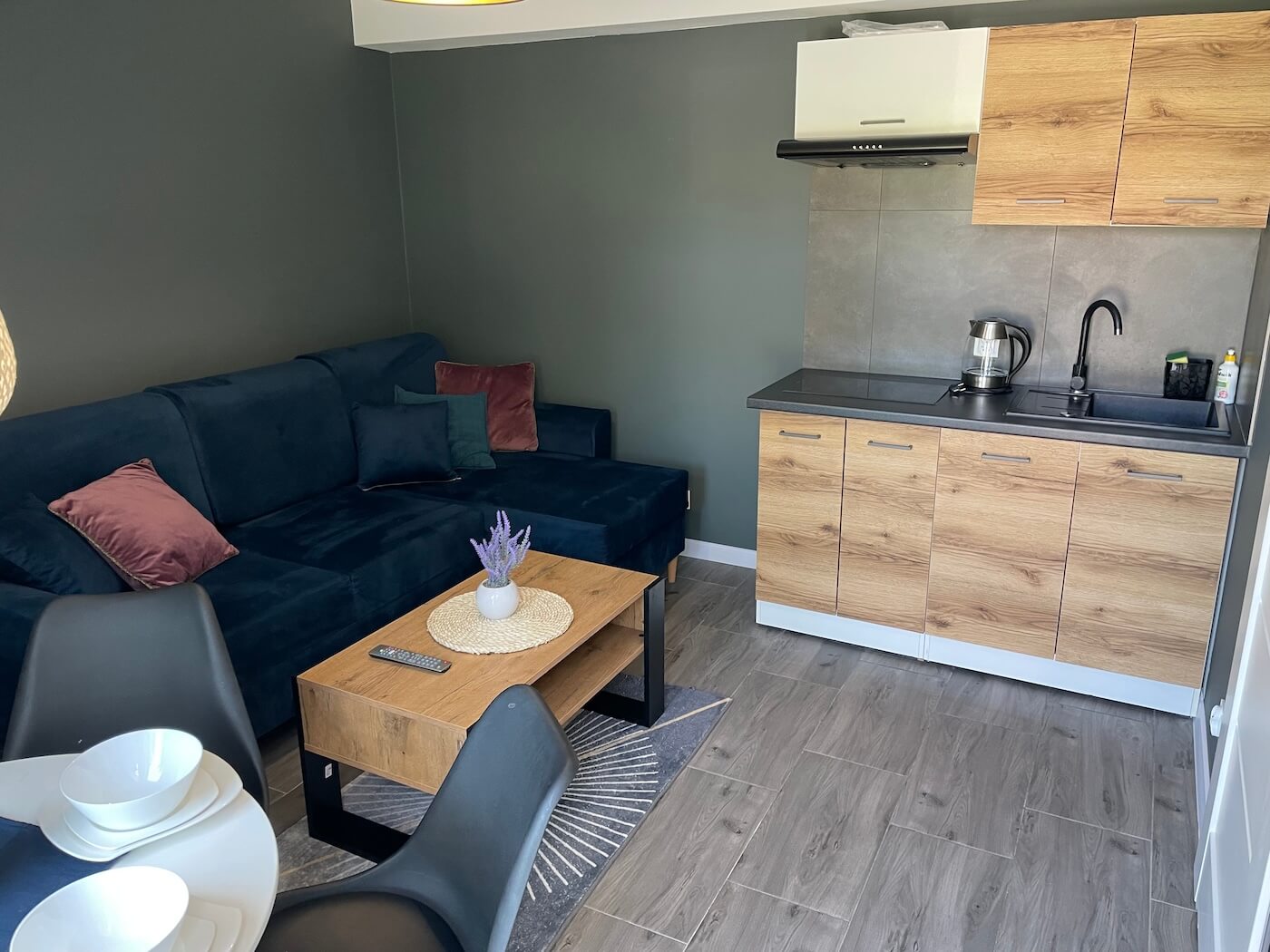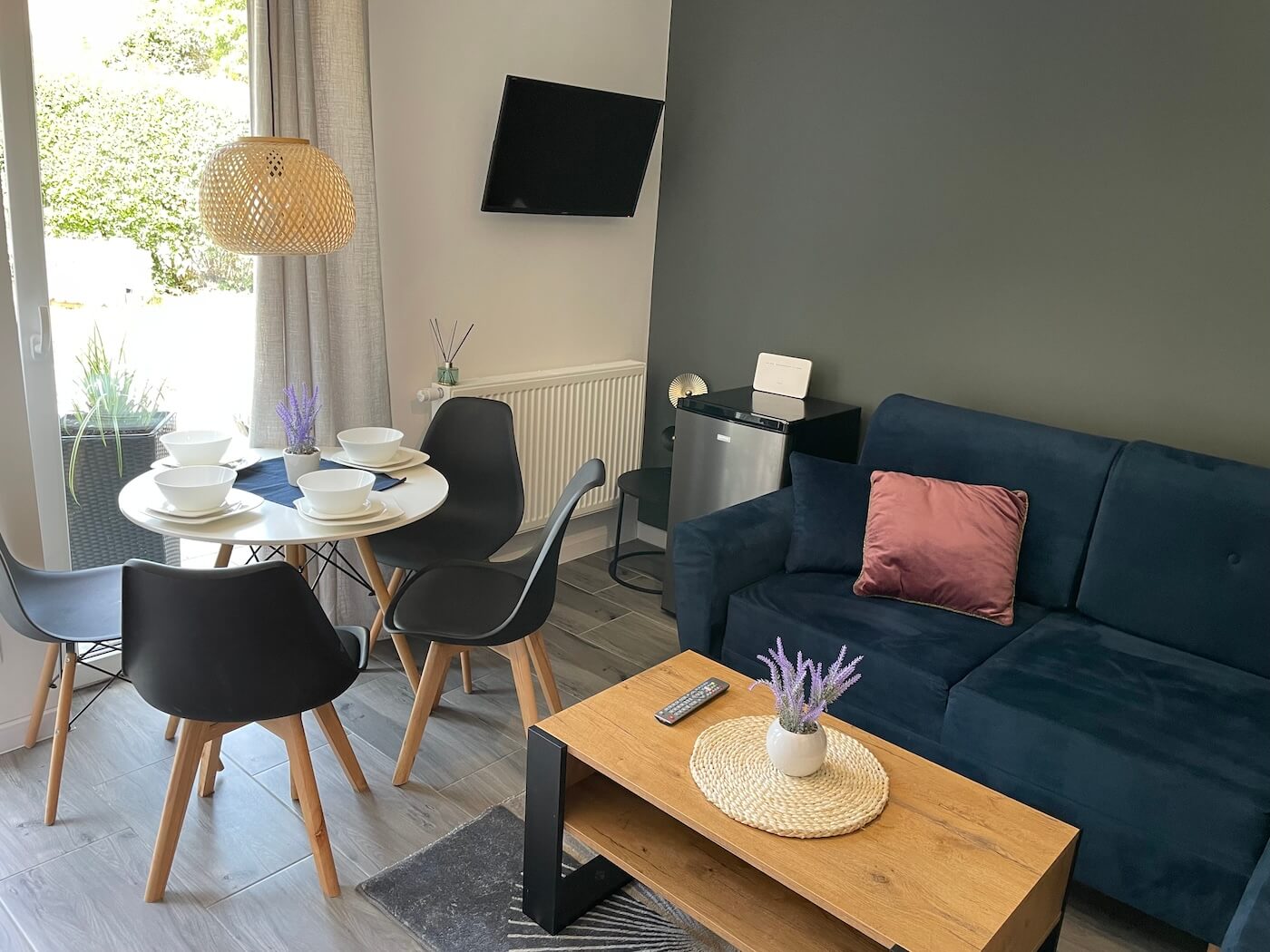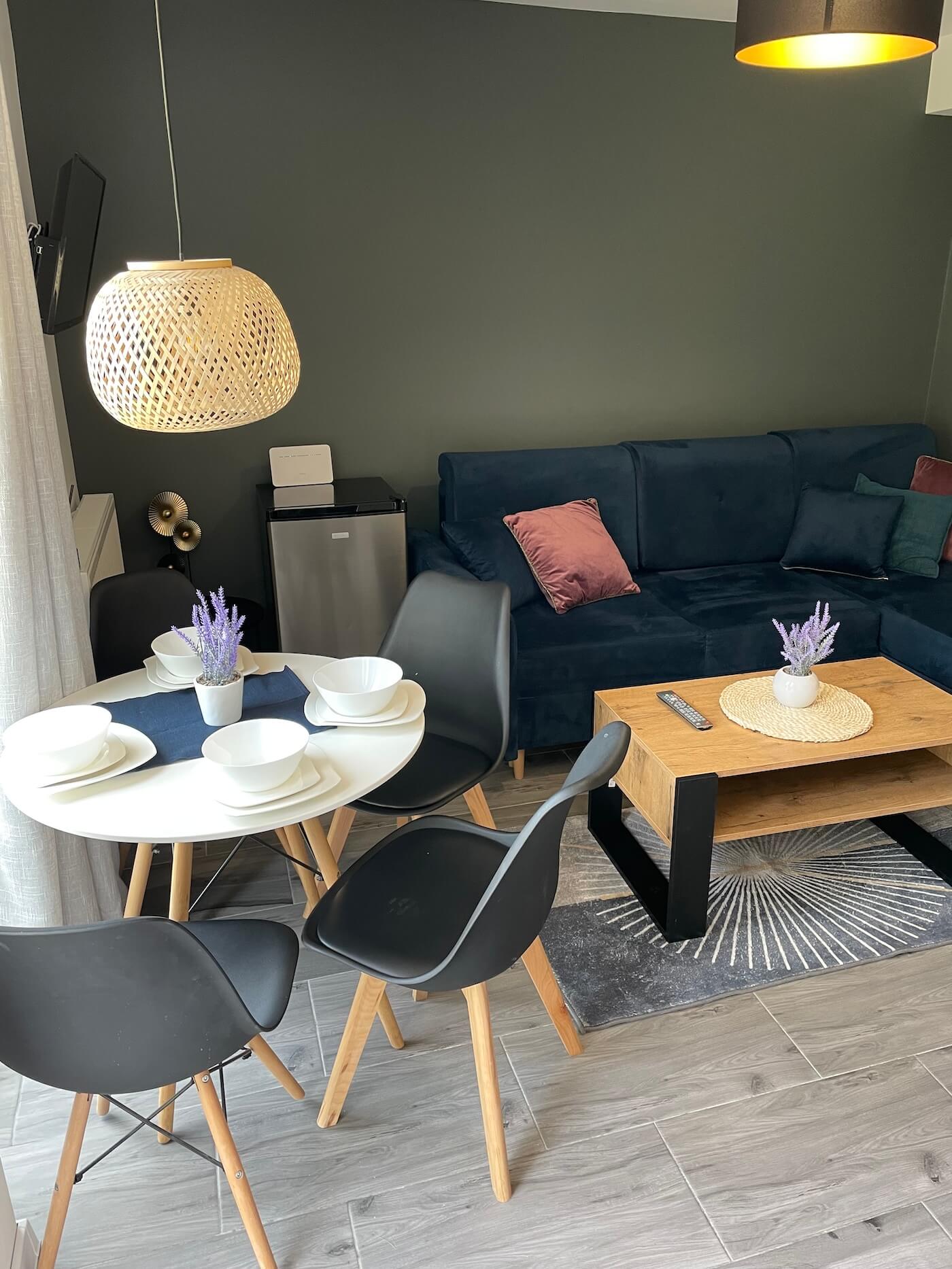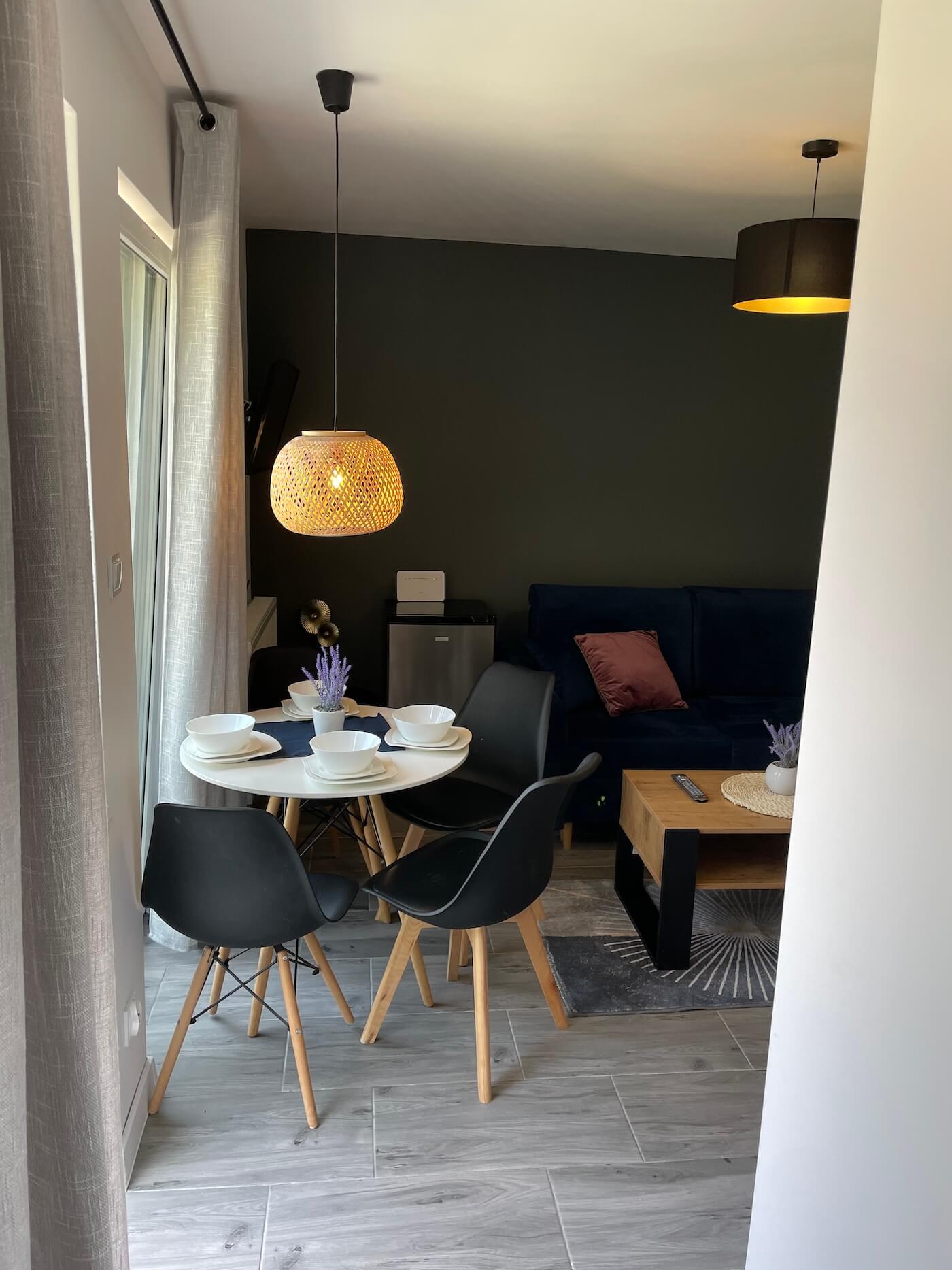Nasz Apartament Premium to nie tylko miejsce do spania – to Twój prywatny dom na wakacje. Osobna sypialnia zapewnia intymność i spokojny sen, podczas gdy przestronny salon z wygodną sofą staje się idealnym miejscem na wieczorne rozmowy lub poranny kubek kawy. Z prywatnego balkonu rozciąga się widok, który sprawia, że od razu czujesz wakacyjny klimat.