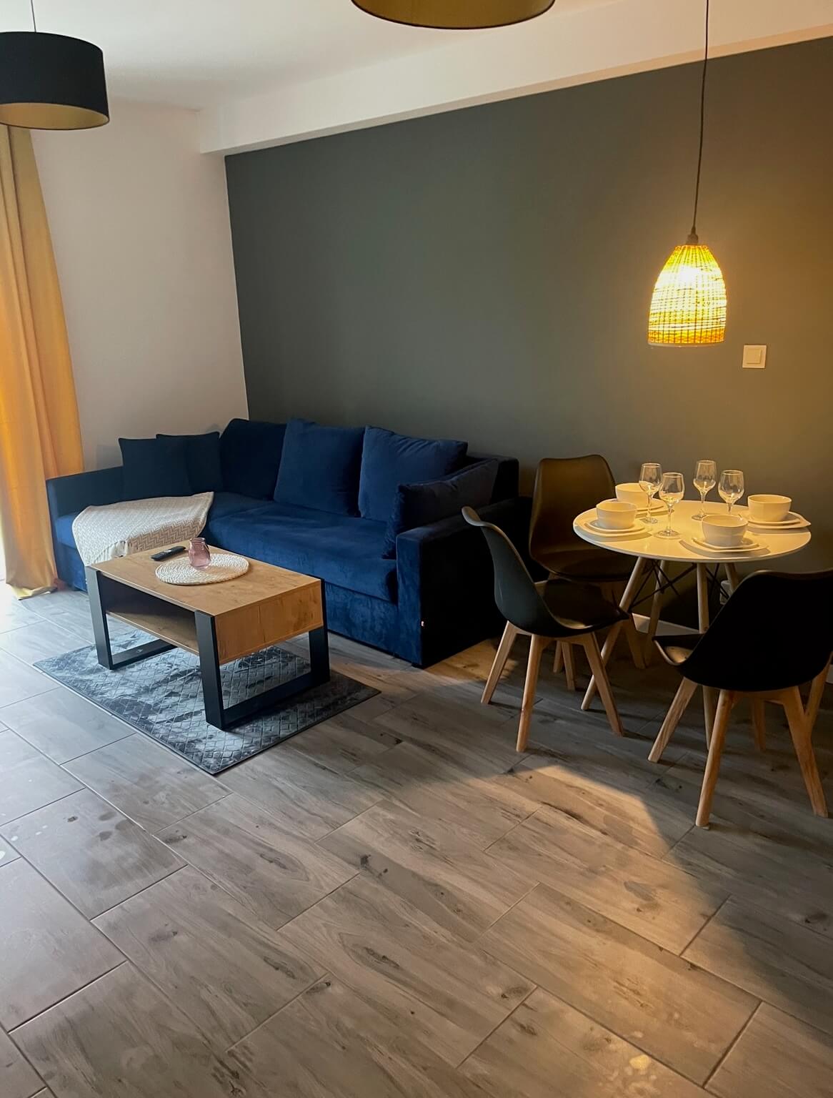 Nasz Apartament Premium to nie tylko miejsce do spania – to Twój prywatny dom na wakacje. Osobna sypialnia zapewnia intymność i spokojny sen, podczas gdy przestronny salon z wygodną sofą staje się idealnym miejscem na wieczorne rozmowy lub poranny kubek kawy. Z prywatnego balkonu rozciąga się widok, który sprawia, że od razu czujesz wakacyjny klimat.