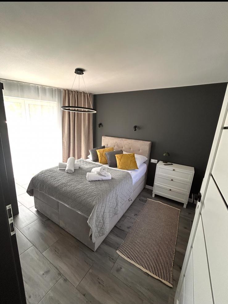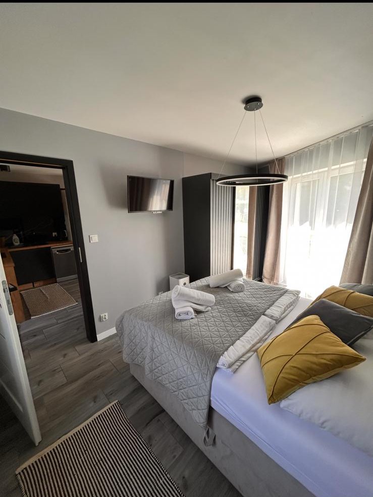 Nasz Apartament Premium to nie tylko miejsce do spania – to Twój prywatny dom na wakacje. Osobna sypialnia zapewnia intymność i spokojny sen, podczas gdy przestronny salon z wygodną sofą staje się idealnym miejscem na wieczorne rozmowy lub poranny kubek kawy. Z prywatnego balkonu rozciąga się widok, który sprawia, że od razu czujesz wakacyjny klimat.